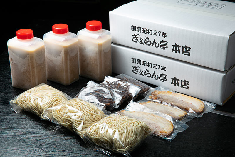 全国の皆様にぎょらん亭の"十割ラーメン"をお召し上がりいただきたく、この度全国配送が始まりました。ぎょらん亭名物、ド豚骨100%のストレートスープをそのまま冷凍しておりますので、ご自宅にてお店そのままの味をお召し上がることができます。