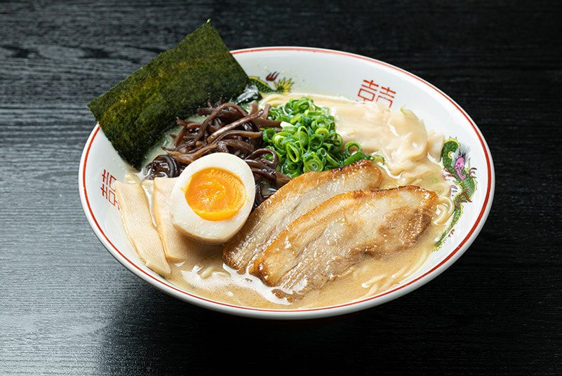 原点となった豚骨100%の「十割ラーメン」の他に、鶏ガラと豚骨のWスープでつくる「二八ラーメン」、独創的な〝泡系スープ〟が特徴の「どろラーメン」など、次々に話題のラーメンを生み出し、多くの麺通を魅了しました。